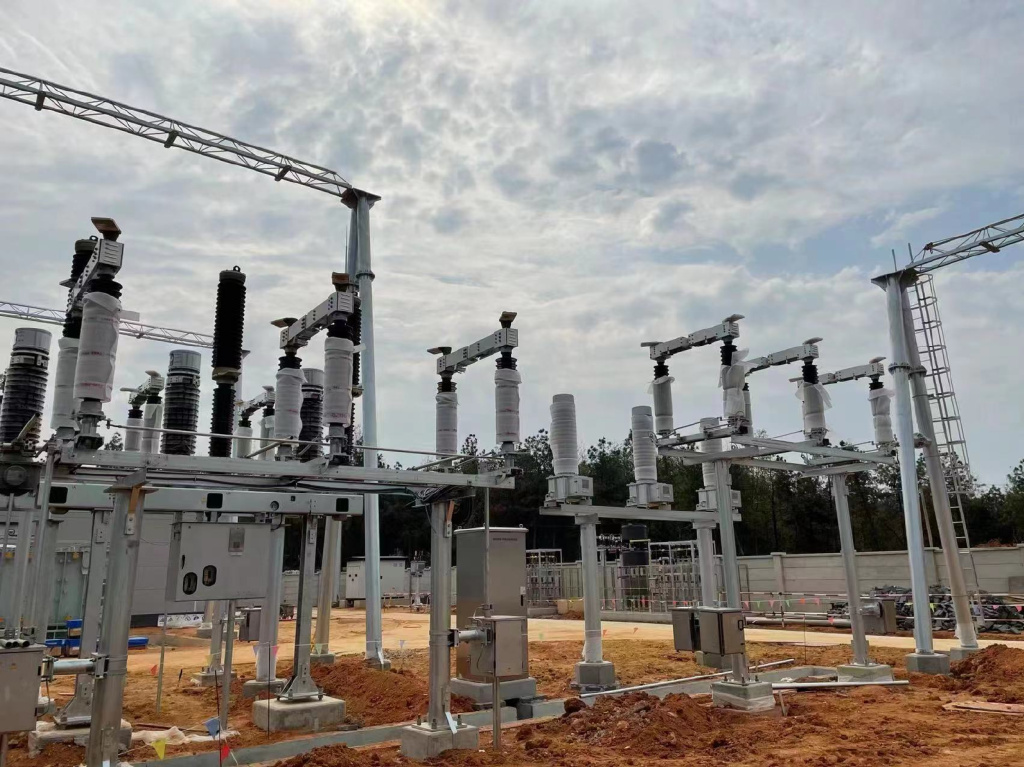 110千伏茶湘输变电工程新建变电站1座,位于岳阳县黄沙街镇,本期容量5万千伏安;新建110千伏线路2条,共计20.9公里。由于35千伏黄沙街变电站连续两年主变重载,工程能否在春节前投产关系到黄沙街镇及周边地区春节期间的可靠供电。2022年5月底,工程项目正式启动,此时距年底仅剩7个月,投产压力巨大。为此,国网岳阳供电公司多次组织施工、监理召开进度推进会,细化各时间节点的工作任务,全力协调项目建设过程中出现的各类问题,确保项目建设进度在控。全体参建人员战胜施工周期短、连续高温、疫情形势反复等困难,众志成城、攻坚克难,圆满实现了投产目标。