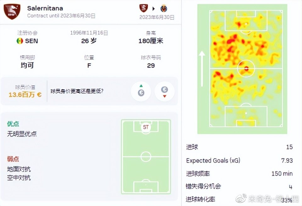 欧冠半决赛破门利物浦后,却依旧被“流放”到意甲中下游的萨勒尼塔纳。45次射门打入15球,破防AC米兰和那不勒斯,终于让越来越多的人看到了他的天赋。