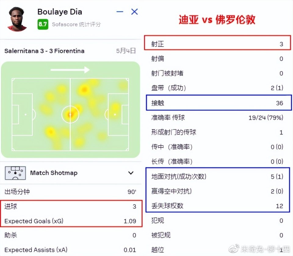 从跟紫百合的比赛数据可以看到,全场只有3次射门,迪亚就收获帽子戏法。