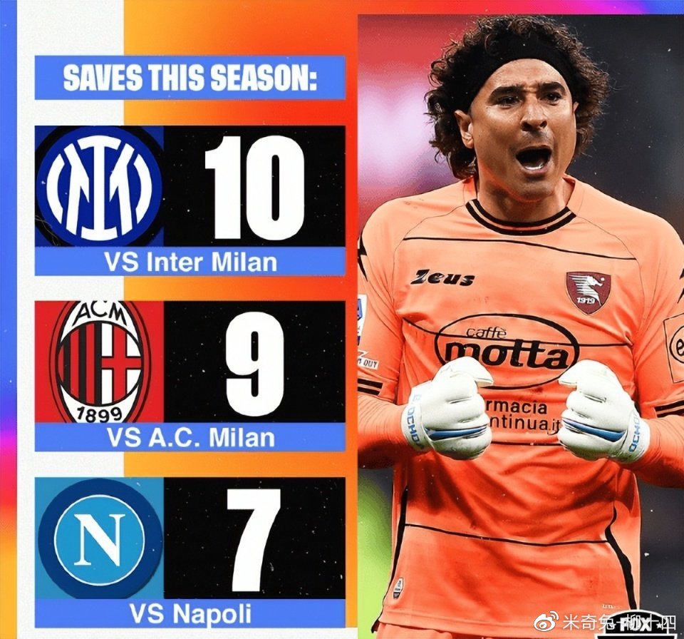 能够连续逼平那不勒斯、AC米兰和国际米兰,3场比赛贡献26次成功扑救的老门神奥乔亚是大功臣。