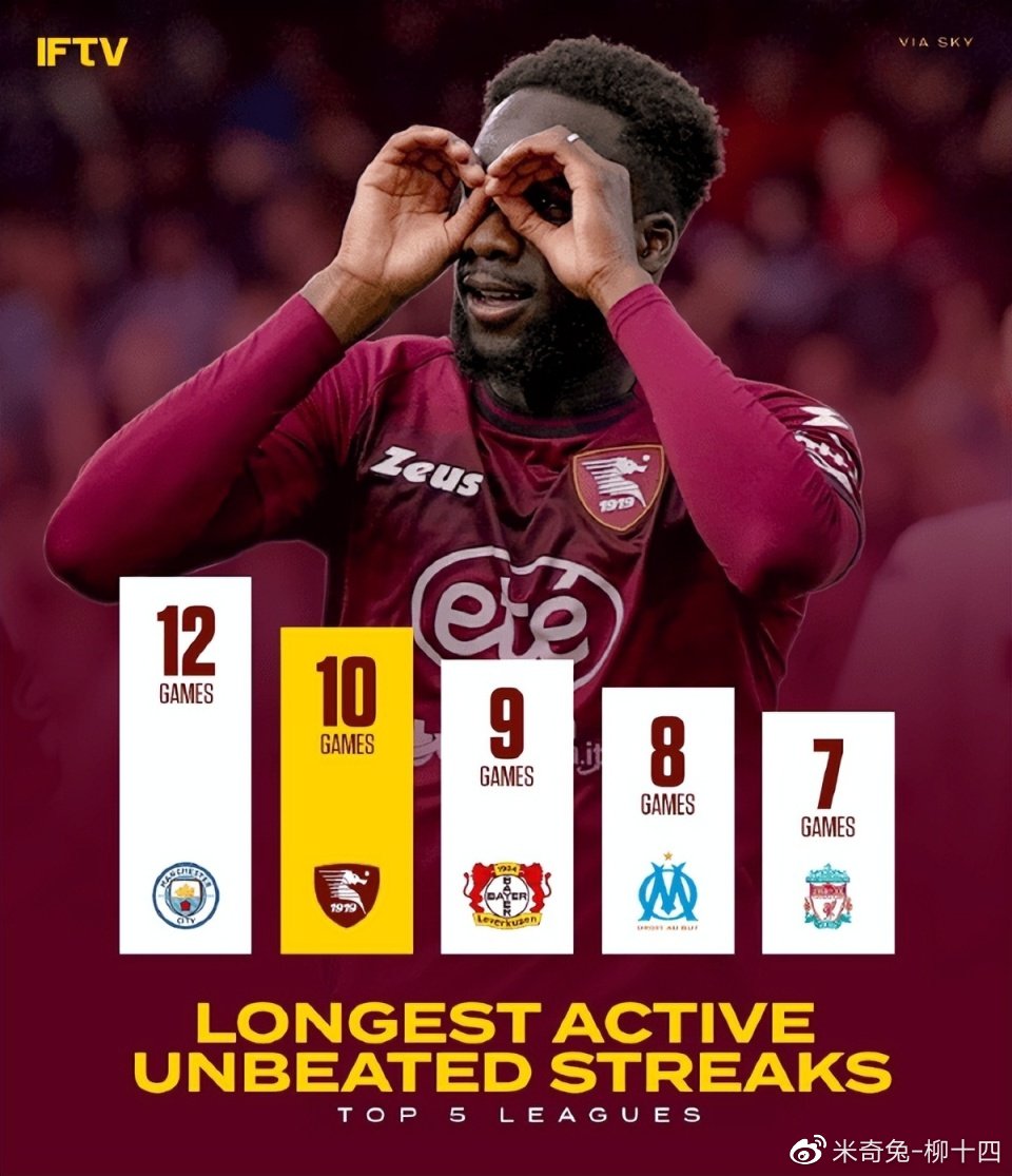 本赛季他们一度也在保级区挣扎,不过从2月底至今,一波意甲10场不败,让他们成为当前五大联赛仅次于曼城的存在。