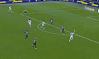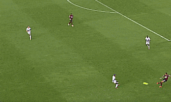 这一波反击中,迪亚是拿球后对方没有贴身紧逼,于是他跟队友撞墙后前插,再一次打穿纵深空间。