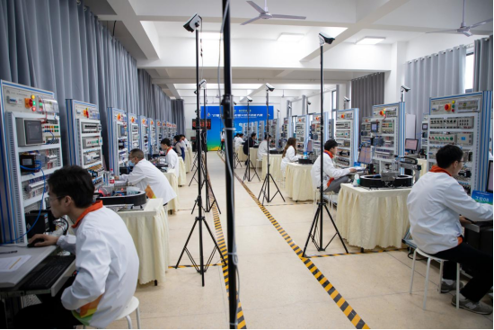其中电工技能竞赛项目由重庆市工业技师学院承办,为保障来自川渝地区的40名电工技能能手,在长达一天半的电工比赛中顺利进行,学院积极组织多名专业教师和学生志愿者参与赛事准备工作,并投入行业领域技术前沿的专业比赛设备。